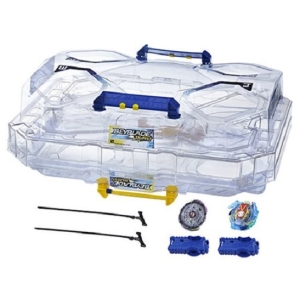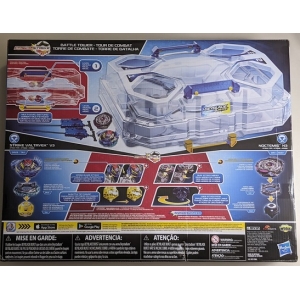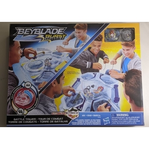 Hasbro Beyblade Burst Evolution SwitchStrike Battle Tower Beystadium set with 2 tops and 2 launchers (UPC: 630509681877).