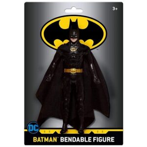 6″ bendable Batman figure in 1989 Michael Keaton style. Flexible PVC with poseable limbs. Classic black suit with yellow bat emblem.