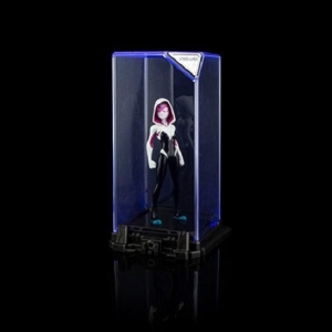 2020 Sentinel Spider-Gwen statue with LED-lit base and dynamic sculpt, from Marvel Illuminate Gallery Collection 2 (UPC: 4897054513138).
