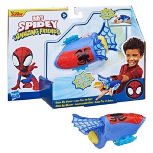 Hasbro Marvel Spidey and His Amazing Friends Spidey Web Slinger wrist‑mounted toy with retractable fabric web (UPC: 5010993853977).
