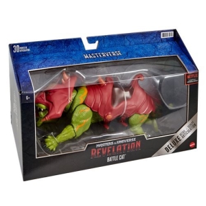 The BattleCat Deluxe figure delivers heroic scale and animated ferocity, perfect for fans of Revelation and collectors building their Eternian battle display.