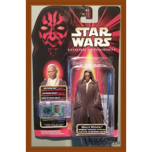 1999 Hasbro 3.75-inch Mace Windu figure in Jedi Council robes with CommTech chip, part of Episode I Collection 1.