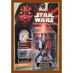 1999 Hasbro 3.75-inch Destroyer Droid figure with deployable blaster arms and CommTech chip (English), part of Episode I Collection 2.