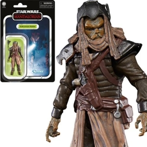 Inspired by The Mandalorian, this Klatooinian Raider figure features premium detail and articulation in classic Vintage Collection packaging. Includes helmet and blaster accessories.