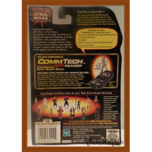 1999 Hasbro 3.75-inch Obi-Wan Kenobi figure in Jedi Duel pose with lightsaber and French CommTech chip, from Episode I Collection 1 (UPC: 076930842133).