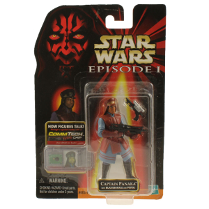 Hasbro Star Wars Episode I Captain Panaka 4" figure with blaster rifle, pistol, and CommTech Chip (UPC: 076281841083).