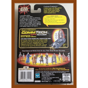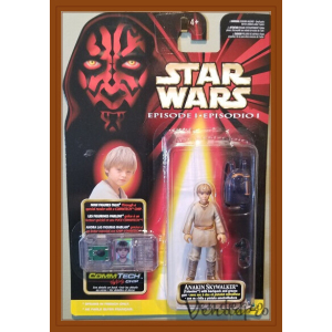This figure captures Anakin Skywalker’s humble beginnings on Tatooine, complete with backpack and grease gun accessories. Includes a CommTech chip for interactive voice playback (French only) — a nostalgic piece from the Episode I launch wave.