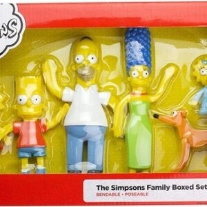 Boxed set of 6 bendable Simpsons figures including Homer, Marge, Bart, Lisa, Maggie, and Santa’s Little Helper. Flexible PVC with poseable limbs. Series 1 collectible from NJ Croce.