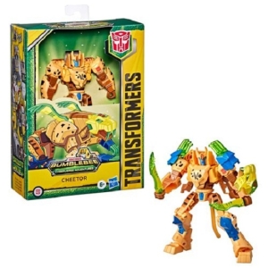 2021 Hasbro Cyberverse Deluxe Cheetor 5" figure with Saber Strike accessories and Maccadam BAF part (UPC: 5010993871094).