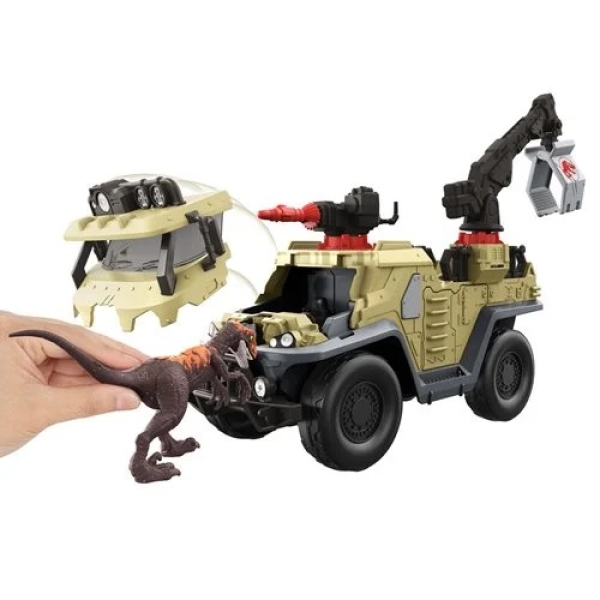 Inspired by Jurassic World Dominion, this 30.5 cm off-road-style truck features rolling wheels, a tranquilizer blaster, a swiveling crane with capture claw, and breakaway parts for dramatic dino battles.