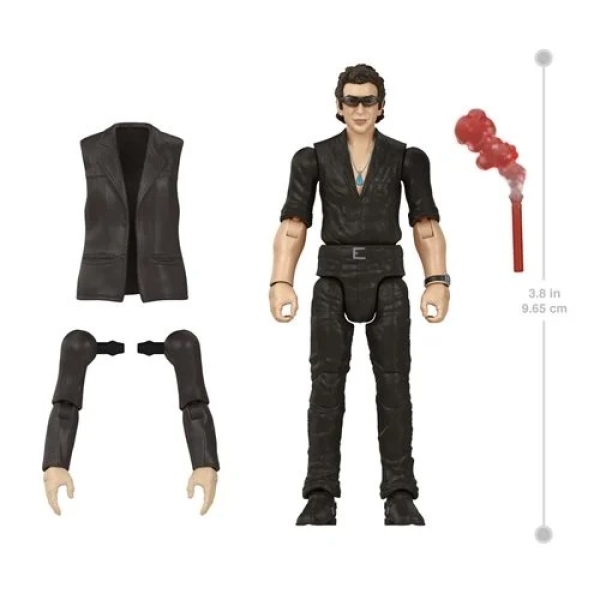 Inspired by his appearance in Jurassic Park, the figure includes a removable soft plastic jacket, swappable arms, and a flare accessory — perfect for recreating the iconic T. Rex scene.