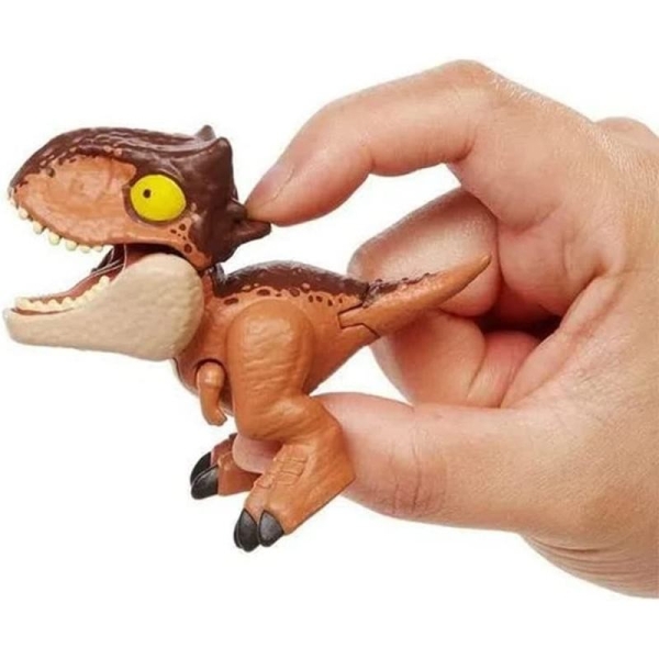 This Carnotaurus Toro figure is part of the Snap Squad – Camp Cretaceous series, featuring stylized designs and expressive personalities.