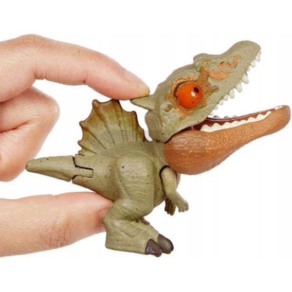 This Spinosaurus mini figure is part of the Jurassic World Snap Squad series, featuring stylized versions of fan-favorite dinosaurs with exaggerated expressions and a signature “snap-on” jaw grip.
