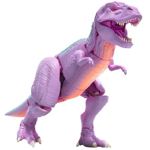 The figure transforms from robot mode to a realistic T. rex, with organic sculpting, premium articulation, and collector-grade packaging.
